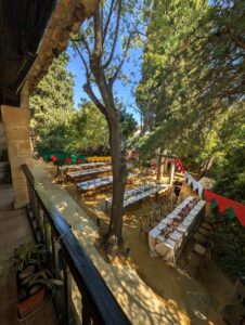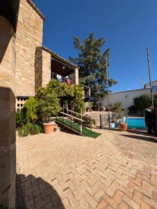 En el corazón del palacio se encuentran sus patios interiores, auténticos oasis de calma rodeados de arcadas y vegetación. Estos espacios resultan ideales para recepciones, cócteles o cenas bajo un cielo estrellado. Los jardines exteriores completan el conjunto, ofreciendo una conexión armónica con la naturaleza y proporcionando escenarios perfectos para ceremonias o sesiones fotográficas.